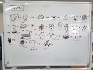 何度か取り組んでいるプログラムで、しりとりを言葉ではなく、絵で繋いでいきます。