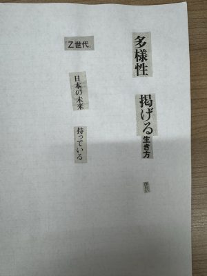 新聞をチョキチョキし、気になるワードを繋げて、川柳にします。